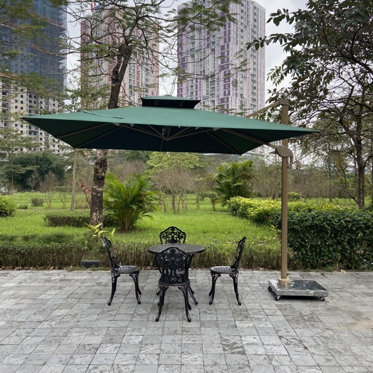 + Thiết kế dù lệch tâm vuông che chắn được khoảng diện tích rộng