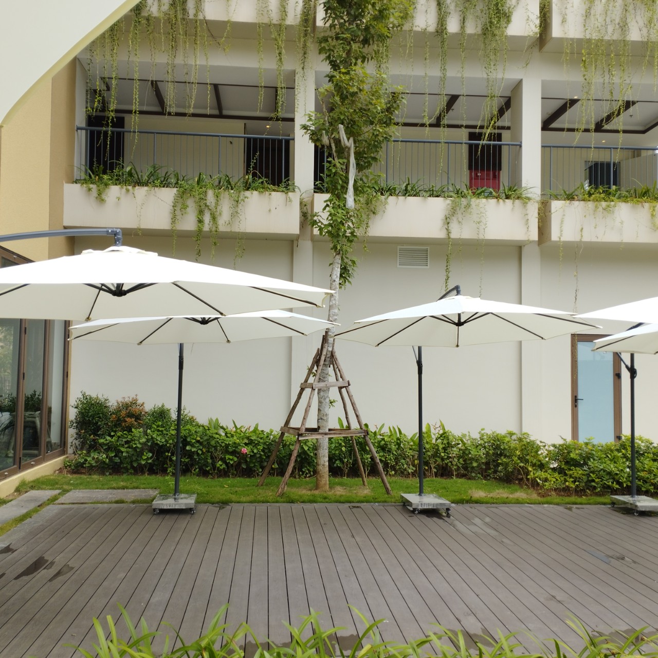 - Giá thành cao hơn: Vì tính năng lệch tâm, giá của dù lệch tâm vuông sẽ cao hơn so với ô dù chính tâm cùng kích thước.