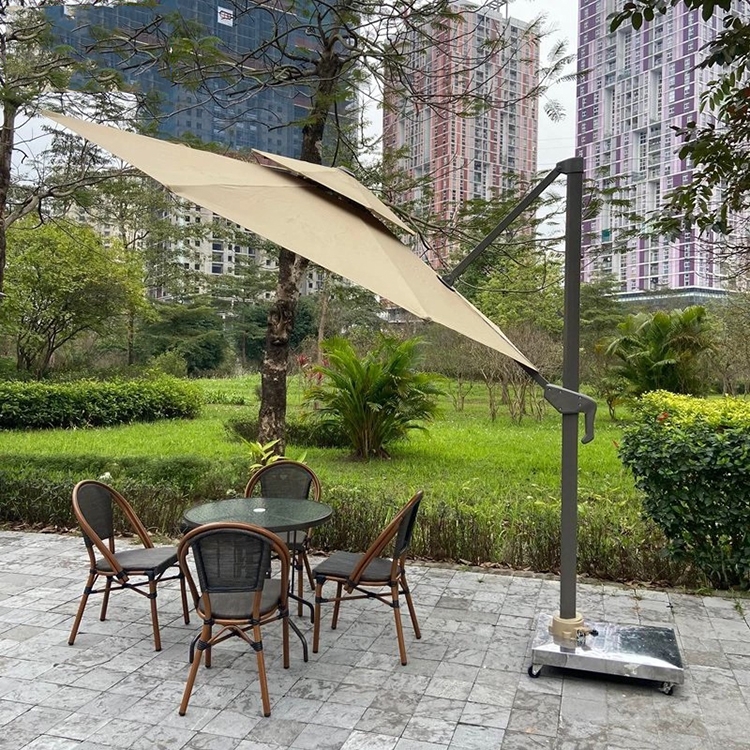 Ô lệch tâm tròn dùng để trang trí sân vườn bạn có thể xoay và điều chỉnh mọi hướng, nấc xoay 360 độ giúp bạn dễ dàng điều chính theo hướng nắng một cách thoải mãi và mang đến khả năng che nắng hoàn hỏa nhất, bạn có thể điều chỉnh ô nghiêng theo ý muốn mà không cân mất thời gian để dịch chuyển cả chân đế của ô.