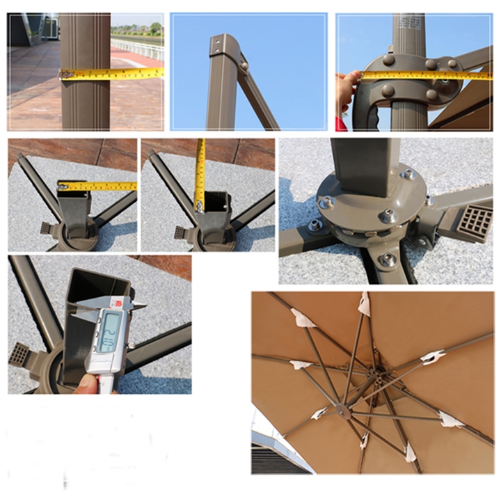 Khung và nan ô làm từ chất liệu hợp kim nhôm cao cấp được phủ thêm một lớp sơn tĩnh điện giúp cho sản phẩm được bền hơn, chịu được mọi thời tiết mưa nắng ngoài trời,