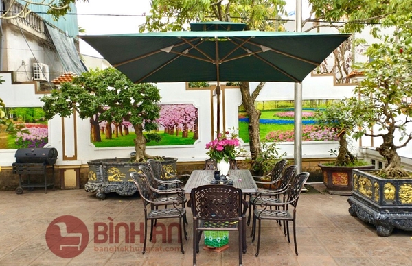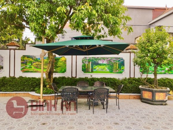 Dù che nắng Bình An giao hàng thành công sản phẩm dù che nắng lệch tâm vuông 3m màu xanh cho khách hàng tại Hưng Yên.