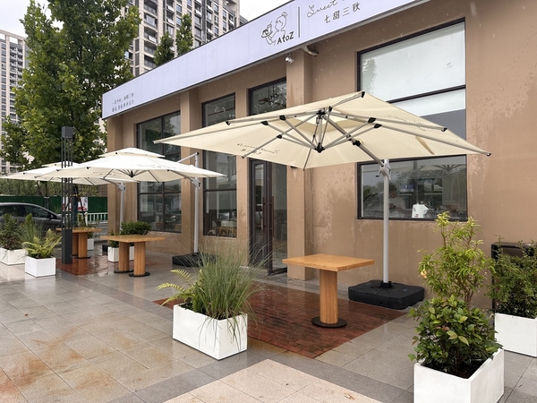 Tổng Hợp Một Số Quán Cafe Sử Dụng Dù Che Lệch Tâm Cho Không Gian Ngoài Trời